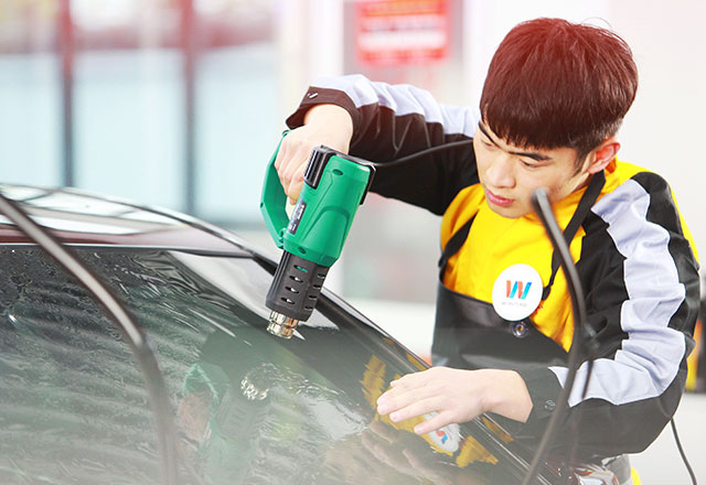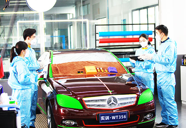 ①太阳膜得烤膜方法选用、烤膜得操作工艺流程、前后挡干烤技术、太阳膜收边技术;
